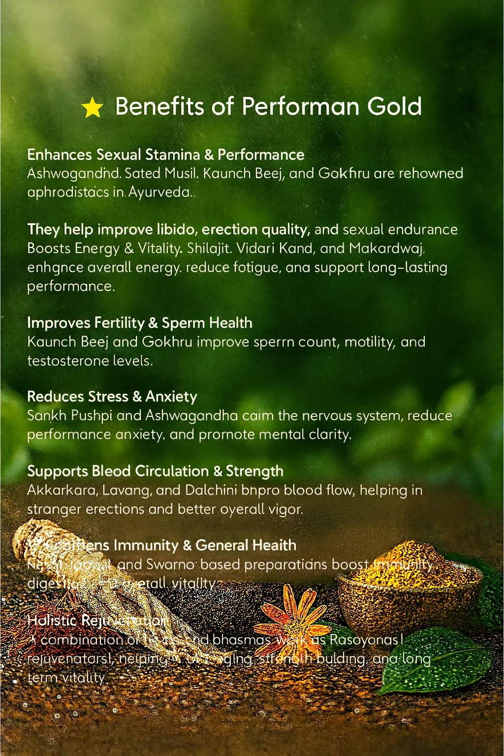 Shilajit, Vidari Kand, and Makardwaj enhance overall energy, reduce fatigue, and support long-lasting performance.